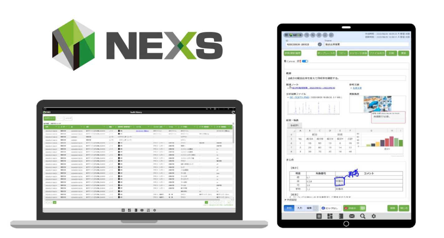 “NEXS”は、研究・開発や、製造・生産の現場向けに開発した、Webベースの電子実験ノート(データ統合システム)です。