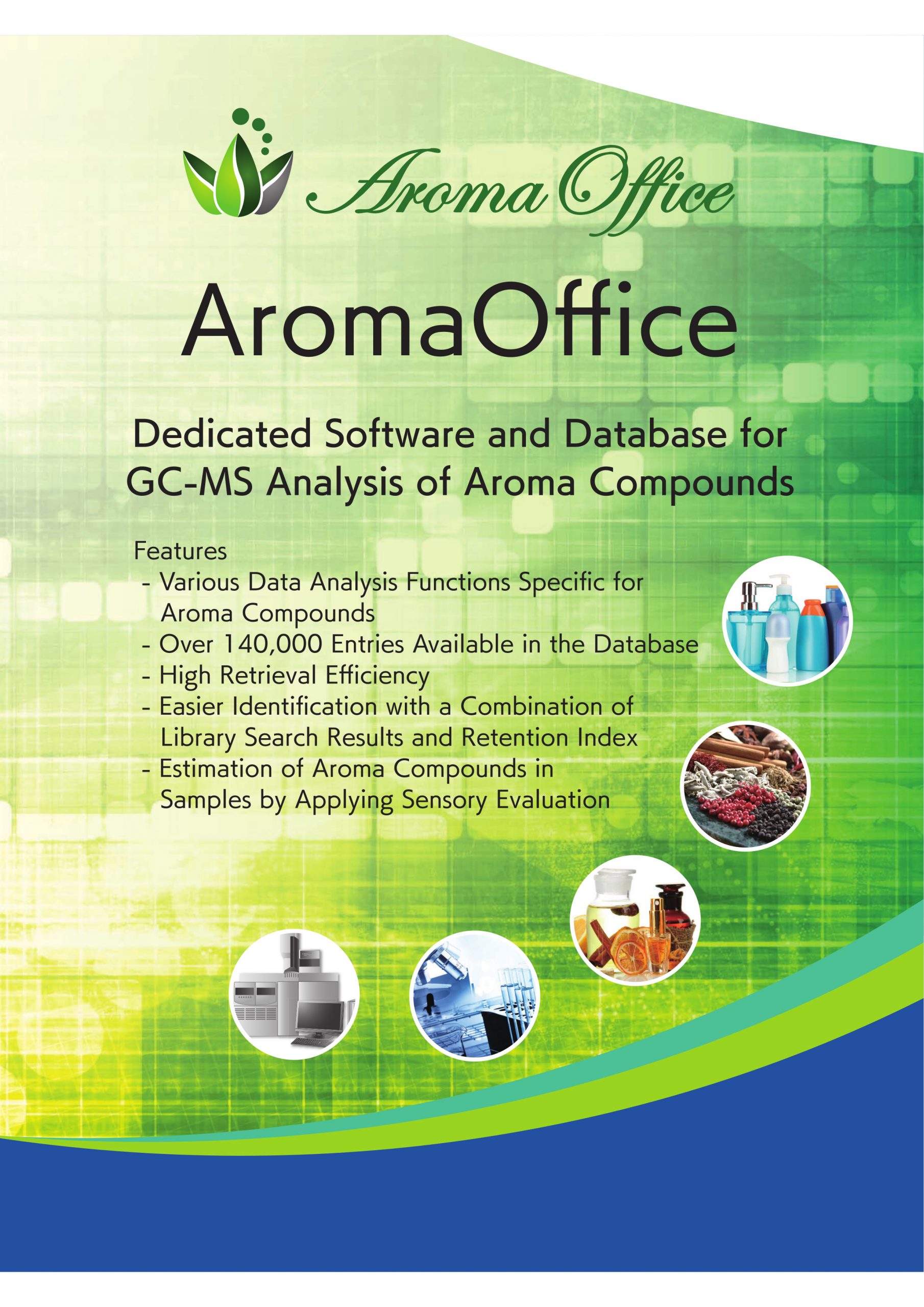 会場では、香気成分データベース「AromaOffice」および、GC/MS用スクリーニング解析ソフトウェア「NAGINATA」を展示・実演いたします。