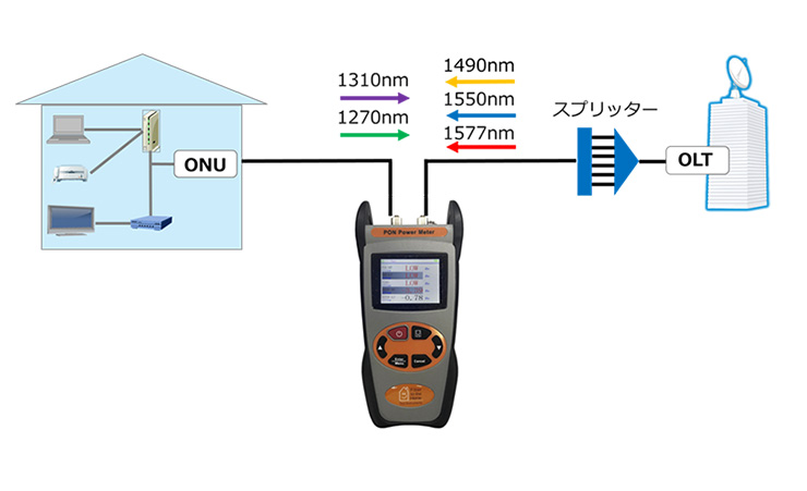 OLTとONUから発光された多重信号を5波長同時に測定することができ、各波長の迅速な品質確認に貢献します。