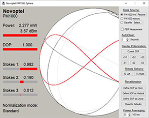 ネットワーク上で発生した偏波変動の状況をポアンカレ球とオシロスコープモードで表示可能なポラリメータです。